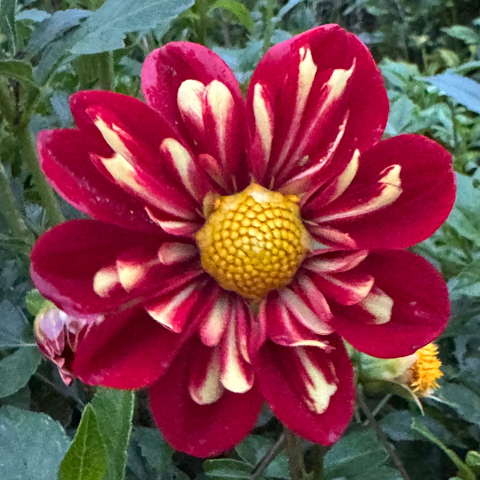 Gorgeous red blooms with yellow collar. Heavy blooming variety that produces all season and is adored by bees!